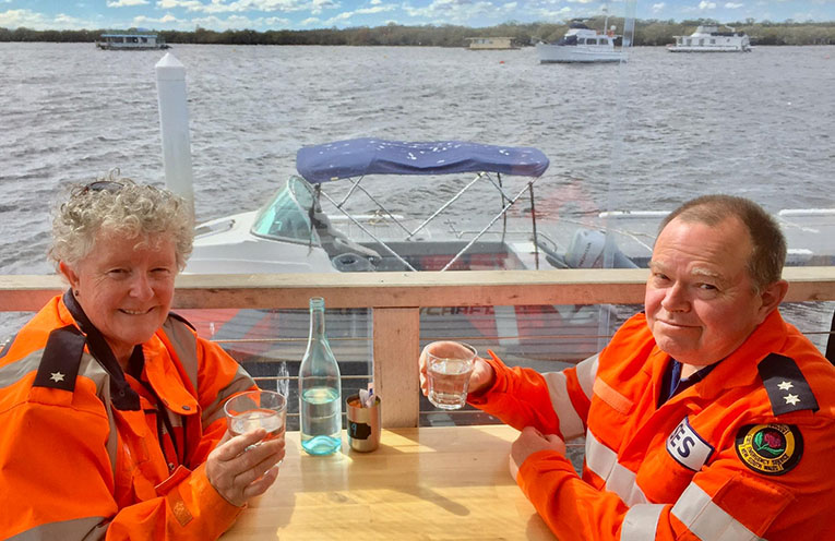 “Greg and I met 39 years ago through the SES in Sydney, when he thought I was a bloke as I was in white overalls being lowered down a ladder on a stretcher during an exercise.