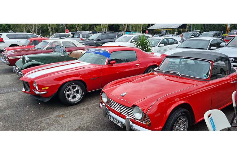 The usually ordinary carpark scene was significantly brightened by the presence of several vintage vehicles owned by members of the Tea Gardens Hawks Nest Motor Club, each sporting a unique backstory.