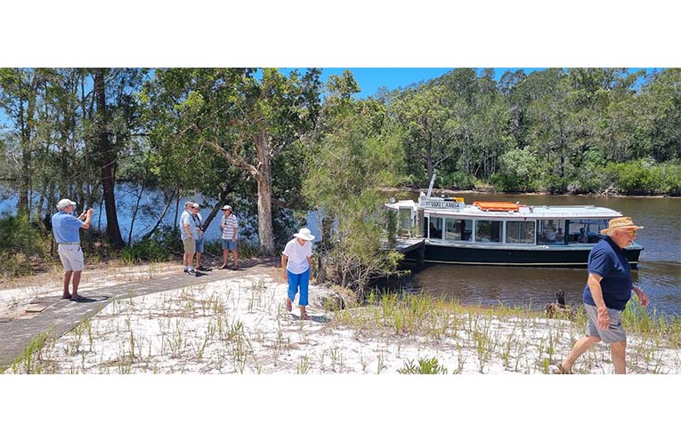 Almost 30 croquet members and guests boarded the MV Wallamba ferry for a jaunt up-river, as Wallamba’s Captain Gary navigated the ever-shallowing riverbed, dodging plenty of sandbars, a constant reminder of the current state of the Myall estuary.