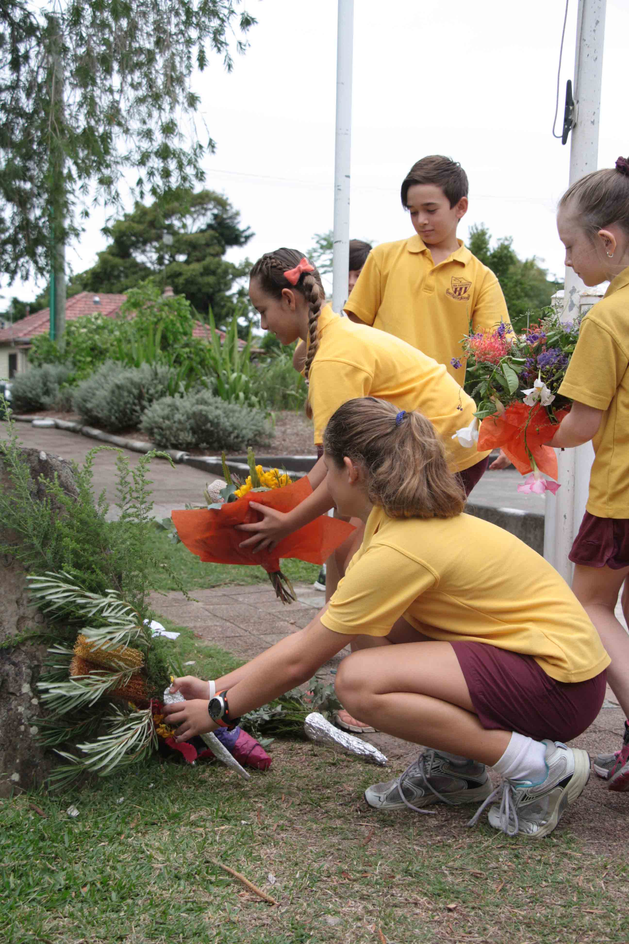 Wreaths and floral tributes were laid by students at each of the schools before the sounding of The Last Post and Reveille.