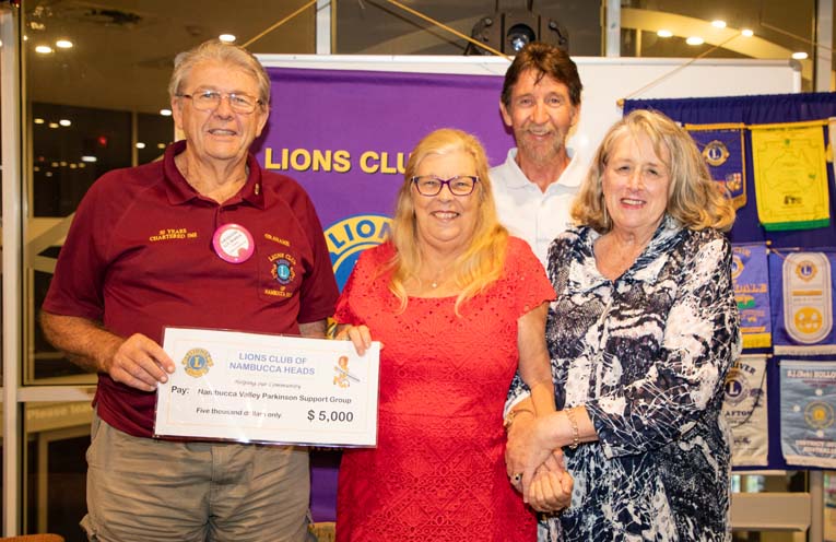 THE Nambucca Valley Parkinson’s Support Group, a team of dedicated volunteers focused on providing assistance to sufferers of Parkinson’s Disease, received a massive boost this week when the Lions Club of Nambucca Heads presented them with a cheque for $5000.