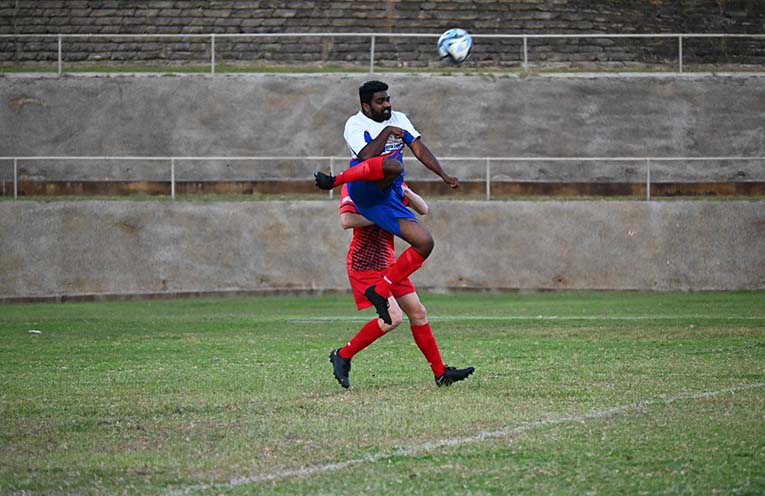 Strikers’ full back Nandu flying high against Macksville. Photo: Amanda Gill Williams.