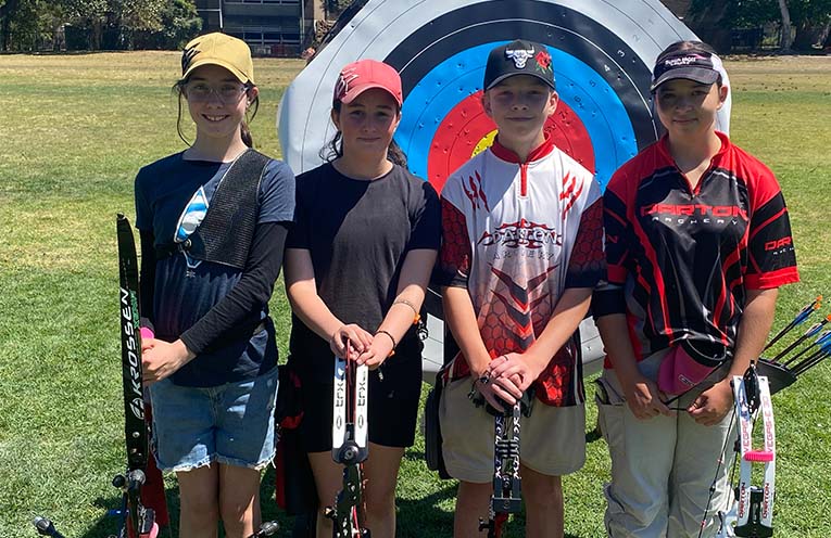 National Target Youth Tournament results for the Sawtell Archers: 1st Kye Lockyer U14 Male Compound, 1st Zali Allen U14 Female Compound, 5th Maddyson Lockyer U16 Compound, 9th Tiah Allen U14 Female Recurve.