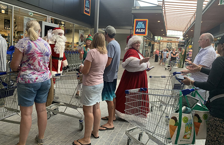 MORE than 100 eager Christmas shoppers turned out to the highly anticipated opening of the new $2.5m Aldi Moonee Beach supermarket on Saturday 18 December, with even Santa and Mrs Claus making an appearance.