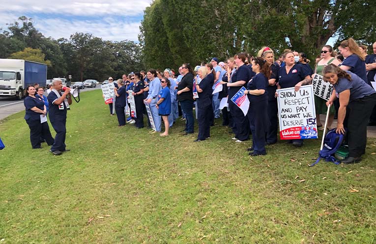 PUBLIC sector Nurses and Midwives’ Association (NSWNMA) members at Coffs Harbour Hospital stopped work for an hour last week as they ramped up their fight for a 15 percent pay increase.