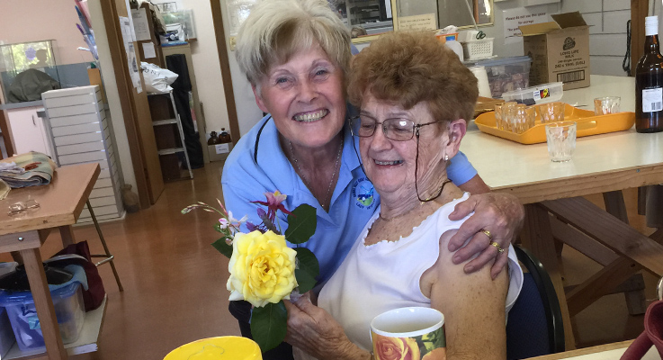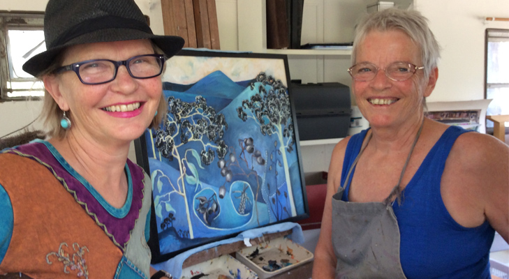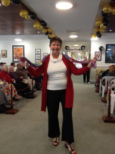 Helen Germeren proudly displaying a painting completed at the U3A Art Day.