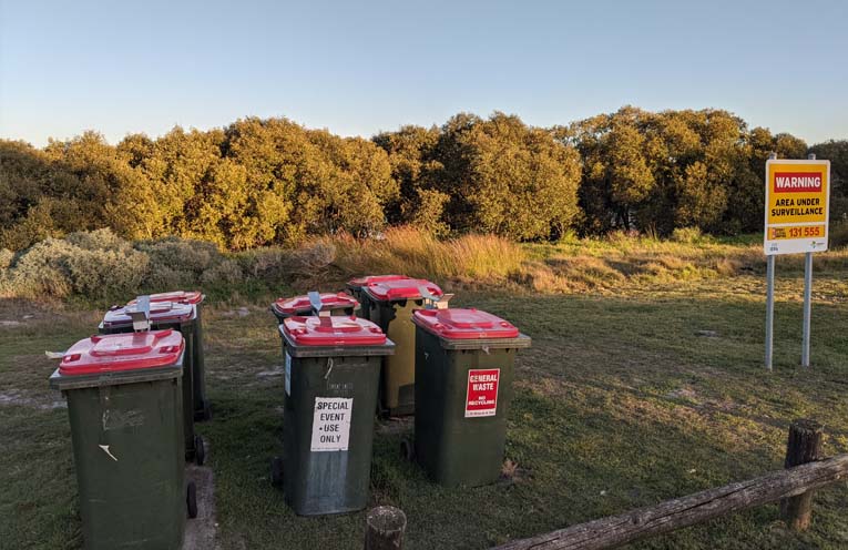 Currently, eight Council-provided bins sit neatly near the BBQ shelter, resulting from a decision to accommodate the recent holiday influx to the area.