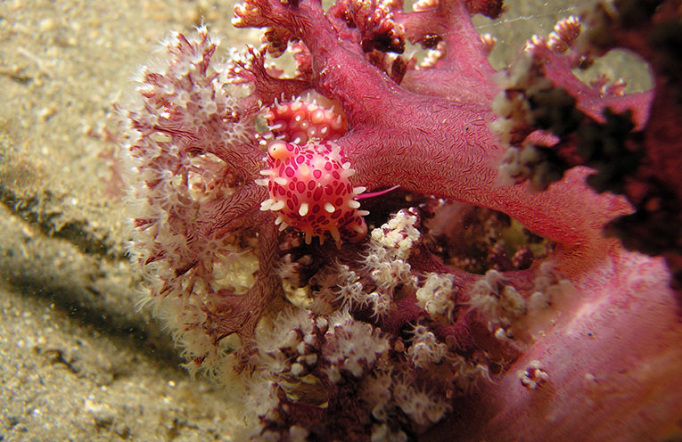 Nudibranch feeding on the coral at Port Stephens. Photo: Jim Dodd.