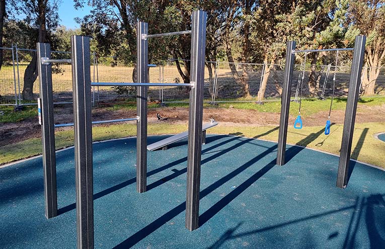 Designed and manufactured in Australia, the UrbanFit equipment sits in three distinct stations, just down the hill from the new Naidoc Mullet Run mural.