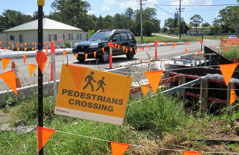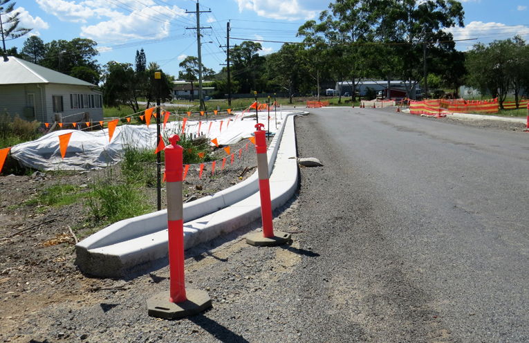 The $1.2m project, jointly funded by MidCoast Council and the RMS, involves reconstructing a section of road, upgrading drains and installing a roundabout and kerb and guttering.