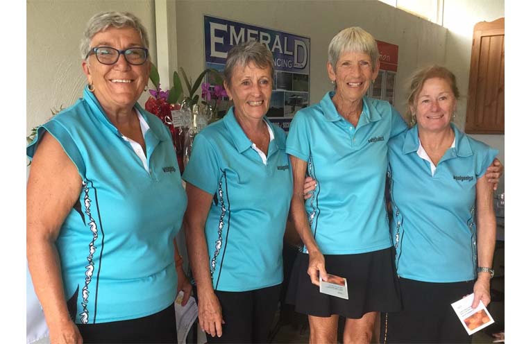 Runners-up Marlene Power and Julie Castle (SB) 47 pts and 3rd Marian Brading and Lyn Reilly (SB) 45 pts. NTP Div 1 Julie Mitchell and Elaine Phillips (CH) Div 2 Shirley Goodger and Robyn Wilkes (G), Div 3 Cheryl Creighton and Kathy McMullin (G).
