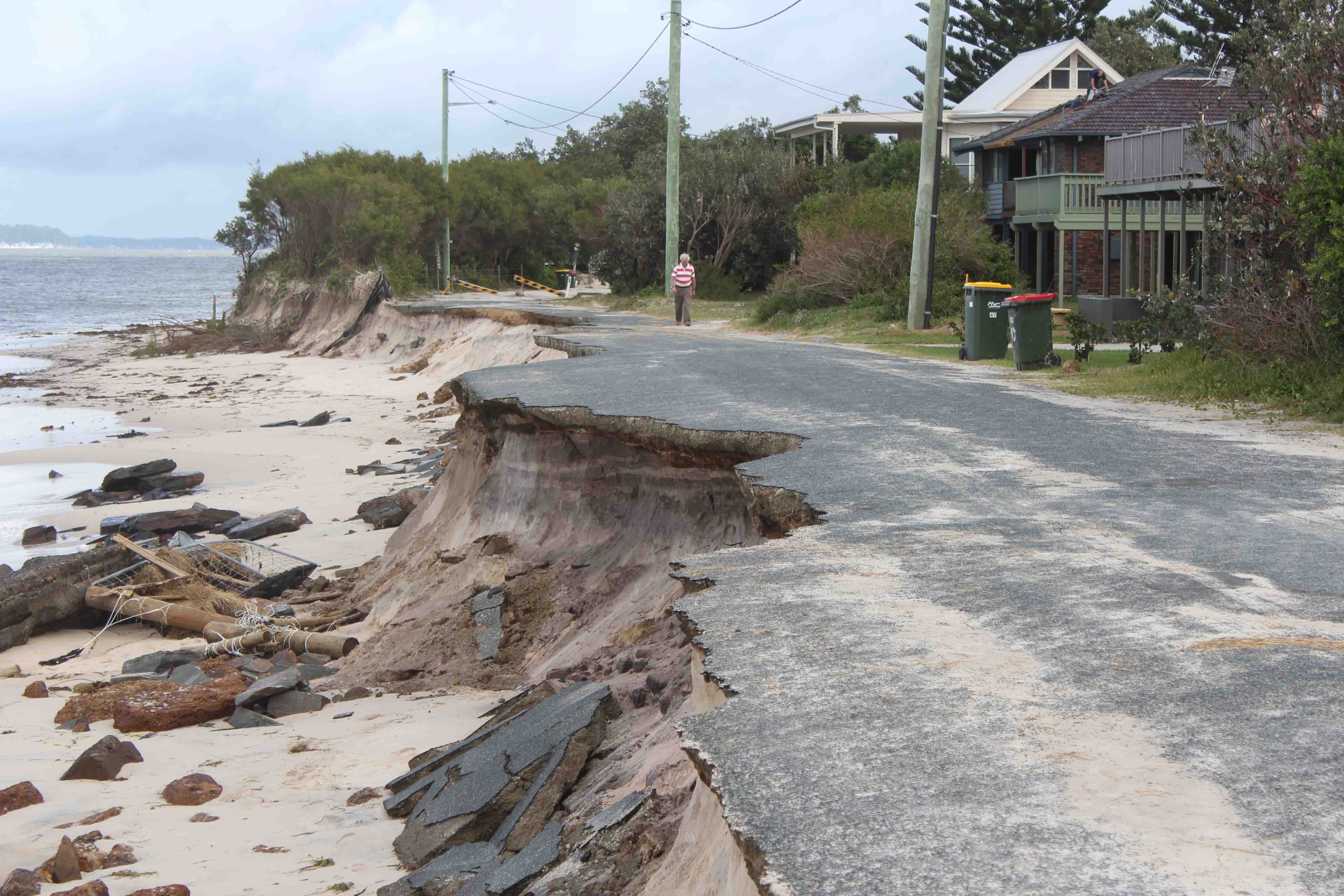 Reconstruction work on the road will commence a soon as possible after enough sand has been deposited from the dredging at the lower channel of the eastern Myall River. It is not expected that there will be vehicular access to the damaged section of The Boulevard before July.