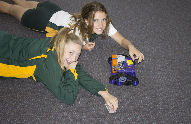 Rebecca Turner and Madelyne Turner Year 9 experimenting with a Mars Rover.