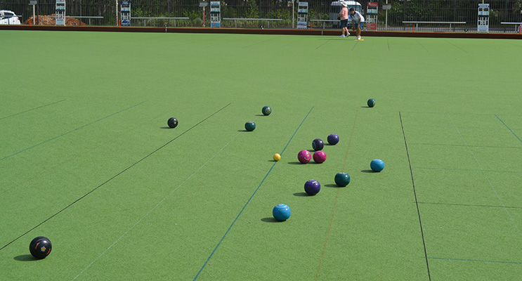 On Rink 2, Dawn May, (visiting bowler from Castle Hill), Pam Gilchrist and Lynda Richards v Carolyn Bywater, Francis Betar and Jill McBride.