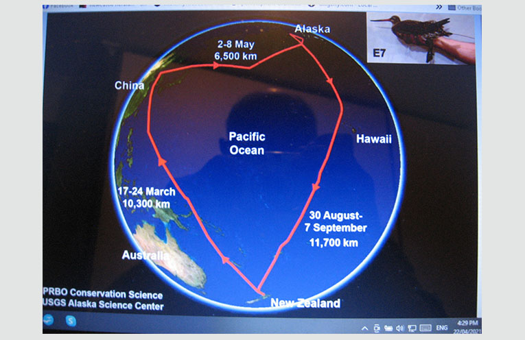 To illustrate the amazing migratory journeys of these athletic avians we turn to E7, a female bar tailed godwit fitted with a minute tracking device.