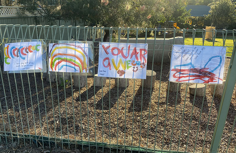 Instead of focusing on the negatives, the educators and children in attendance at Stroud Preschool took to making posters and signs to cheer up the community.