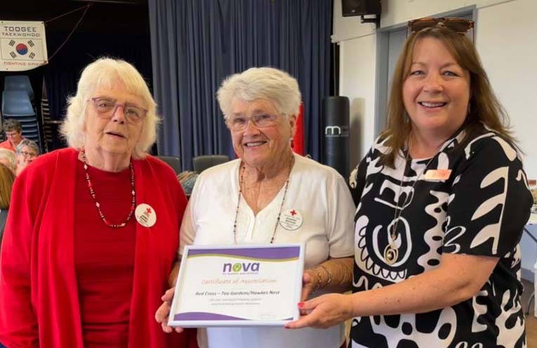 The Wednesday Craft group, which meets weekly at the Hawks Nest Community Hall, hosted the much-anticipated award ceremony, as Nova’s Wendy Pinch proudly presented Certificates of Appreciation to the ladies of the Craft Group, as well as the Tea Gardens Red Cross team, and also to Lyndal from The Grange Craft Group.
