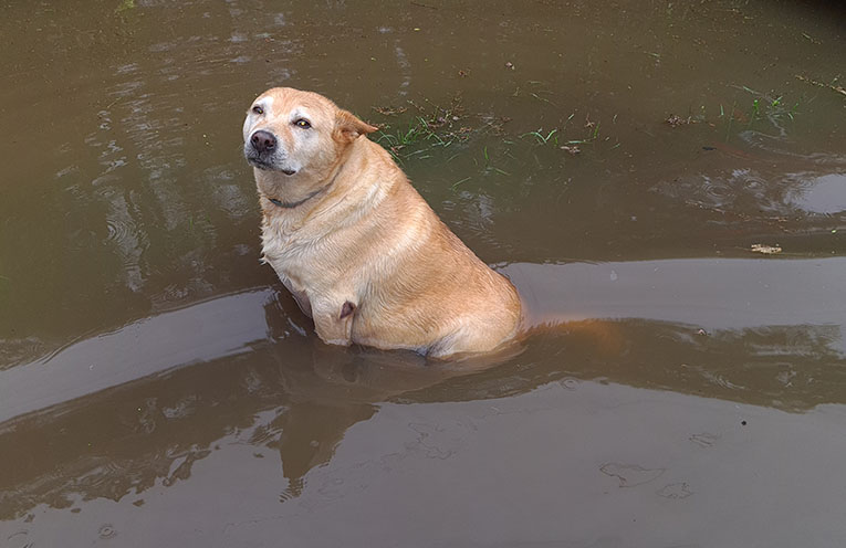 Markwell Road was well under water and could not be driven on.