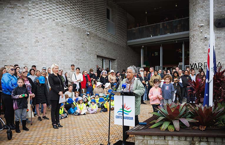 This was the first time Coffs Harbour’s NAIDOC Week celebrations have been held at Yarrila Place, with hundreds of people joining in activities such as the official flag-raising, a housing forum, story-time in the library and cultural activities like art and dance.